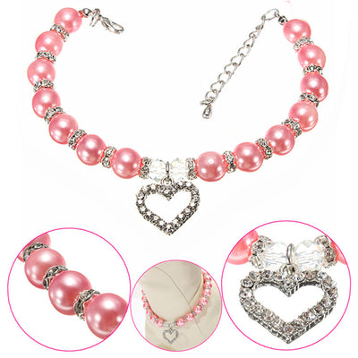 Red Heart Bead Necklace Dog Collar